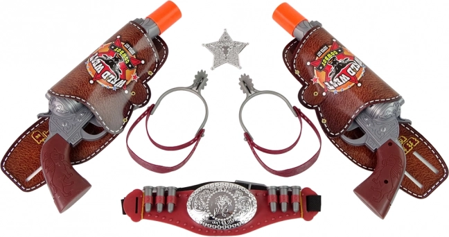 Cintura con fondine, due revolver, stella da sceriffo e manette: tutto ciò che serve per avventure emozionanti nel Selvaggio West.