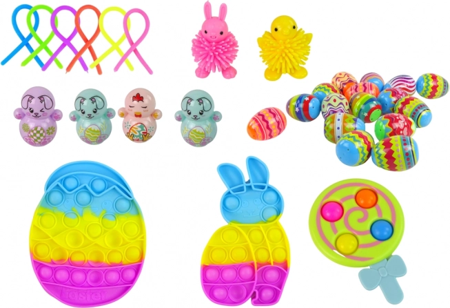 Questa collezione pasquale unisce divertimento e sviluppo delle abilità. I bambini possono schiacciare, premere, staccare e allungare diversi giochi che aiutano a sciogliere la tensione e migliorano la concentrazione. Il set è ideale per i giorni di festa, l’asilo, le feste e le attività creative a casa.
