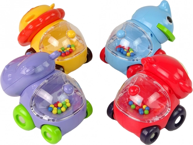 Con questo vivace set di macchinine a forma di animali i bambini vivranno ore di divertimento. Le palline colorate sotto la cupola trasparente creano effetti accattivanti durante il movimento, motivando a esplorare e a giocare. La struttura robusta in plastica di qualità assicura lunga durata e manipolazione sicura per i più piccoli.