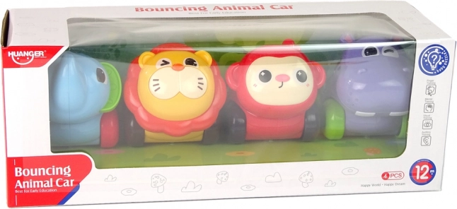 - 4 macchinine a forma di animali (elefante, ippopotamo, leone, scimmietta)