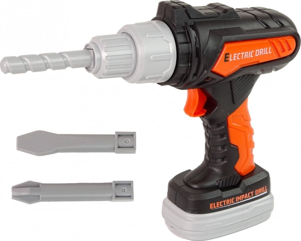 Il set include due punte intercambiabili che permettono di adattarsi facilmente a diversi tipi di viti e occhiali protettivi per giocare in sicurezza. Il colore arancione del trapano aggiunge un aspetto autentico.