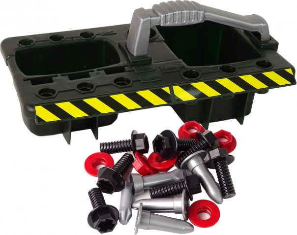 La confezione include viti, seghe, chiavi e altri giocattoli che offrono diverse possibilità di gioco.