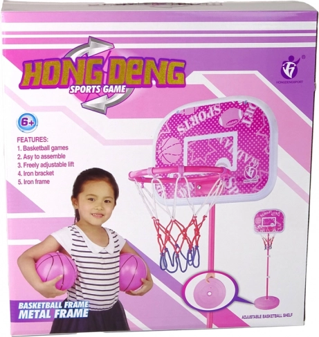 Attraente canestro rosa con motivo sportivo, ideale per i bambini.