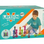 Il tutto è confezionato in un connettore di plastica, in modo che i birilli possano essere sempre impilati. Gli elementi del set hanno il certificato CE, il che significa che sono un giocattolo sicuro per i più piccoli. Il giocattolo è adatto a bambini di età superiore a 6 anni.