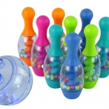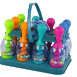 .La palla da bowling si illumina di colori diversi durante il lancio. I birilli contengono al loro interno palline colorate che, quando vengono abbattuti, emettono un suono tintinnante.