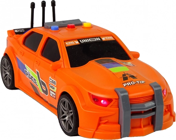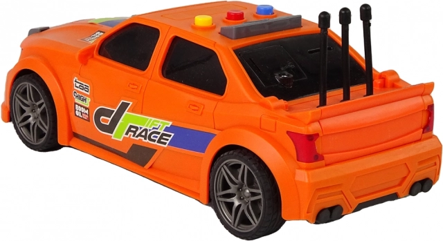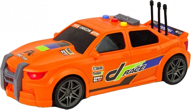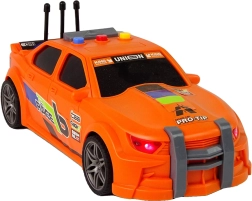 L'auto da corsa arancione con grafiche accattivanti, elementi sportivi e dettagli curati colpisce al primo sguardo. La plastica resistente sopporta un uso frequente.