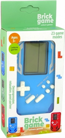 La compatta console tascabile Brick Game in colore blu offre divertimento ovunque. Propone 23 giochi, comandi semplici tramite i tasti ROTATE e le frecce, scelta del livello di difficoltà e della velocità. Perfetta da mettere nello zaino, sviluppa le abilità manuali e la fantasia dei bambini. Ottima come regalo.