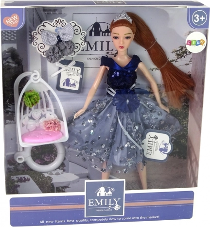 La bambola Emily porta un tocco di eleganza fiabesca nella cameretta. Ha capelli lunghi e ben acconciati, un abito blu scintillante con dettagli in paillettes e sulla testa una delicata tiara luminosa. Il set è pensato per gioco di fantasia e di narrazione, che sviluppa creatività e motricità fine.