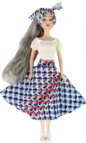Bambola alla moda con lunghi capelli grigi