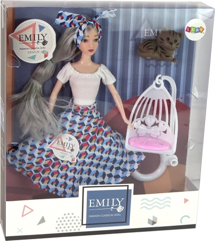 La dolce bambola EMILY farà felici tutti i bambini con i suoi lunghi capelli grigi, un outfit alla moda e un tenero accessorio: il gattino e l’altalena. Perfetta per giochi creativi e di moda, stimola la fantasia e la motricità fine. Adatta ai bambini dai 3 anni, con certificazione CE e conformità alla EN71.