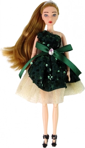 Porta magia al gioco dei bambini con la bambola Emily: un'elegante bambola con lunghi capelli biondi, tiara dorata e abito con paillettes verdi. Gli arti snodabili permettono pose naturali e facilitano la messa in scena di sfilate e racconti.