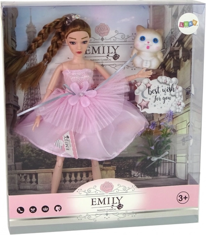 La bambola EMILY è elegantemente confezionata in una scatola con motivo floreale: un’ottima idea regalo per bambini dai 3 anni.