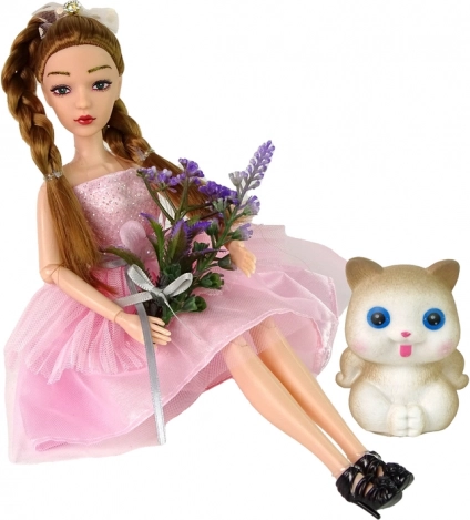 Nella confezione sono inclusi un dolce gattino e un mazzo di fiori viola, che ispirano i bambini a creare scenari e sviluppare la fantasia. La lavorazione di qualità in plastica resistente e l’abito in tessuto garantiscono una lunga durata del giocattolo. La bambola è splendidamente confezionata per essere subito pronta a fare felici.