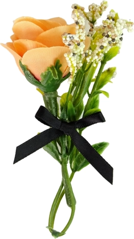 L'abito scuro a motivo floreale, le décolleté con tacco e la rosa decorativa esaltano lo stile di Emily.