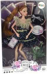 Scopri il mondo della moda con la bambola EMILY: scelta ideale per giochi creativi, sfilate domestiche e storie di tutti i giorni. La bambola indossa un bellissimo abito blu scuro con fiorellini bianchi e coordinate décolleté nere con tacco. I lunghi capelli invitano a pettinare e creare acconciature, mentre gli arti mobili permettono pose naturali come su una vera passerella.
