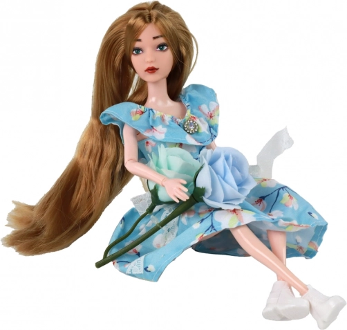 Nella confezione trovi anche fiori blu-verdi che si abbinano perfettamente all’outfit di Emily. La bambola è confezionata in una scatola regalo (33 × 20 × 6 cm), pronta per essere donata. La certificazione CE e la conformità alla norma EN71 garantiscono un utilizzo sicuro.