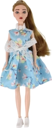 La bambola Emily (30 × 7 × 4 cm) è una delicata compagna per il gioco creativo. Ha lunghi capelli nelle tonalità biondo scuro, facili da pettinare e decorare, occhi verdi e un trucco leggero per un aspetto realistico. Indossa un grazioso abito blu con motivo floreale, pizzo, fiocchetto e colletto, impreziosito da un piccolo dettaglio “a diamante” sul collo e scarpette bianche.