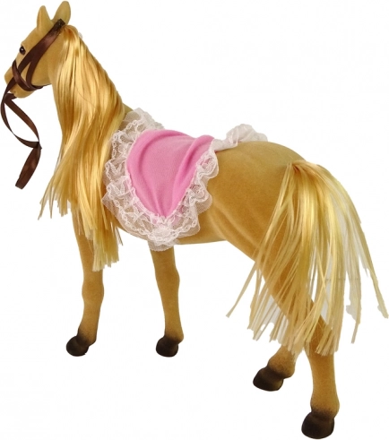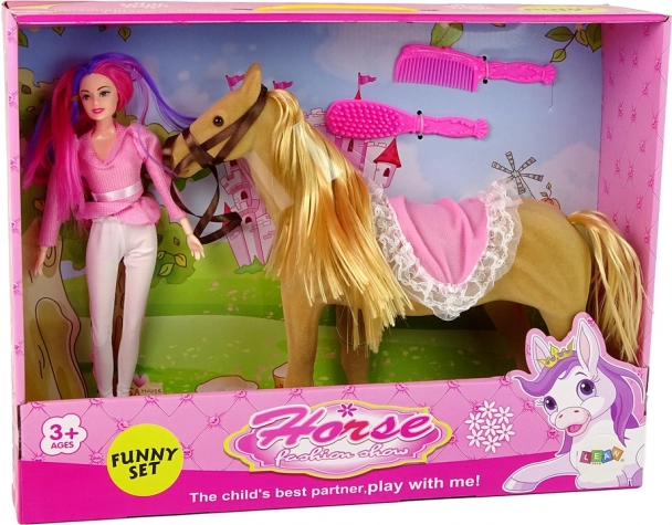 Il cavallo marrone ha una splendida sella rosa e una lunga criniera che puoi pettinare con la spazzola e il pettine inclusi.