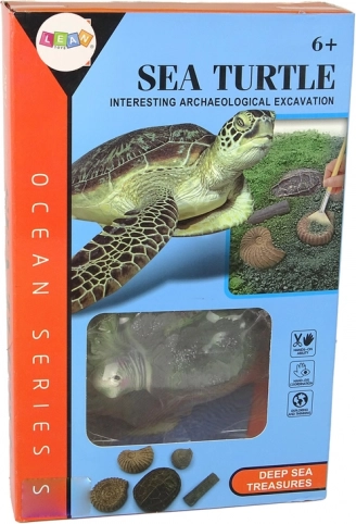 Set educativo completo per gli amanti della vita marina e dell'archeologia. All'interno del fossile realistico della tartaruga, dalle dimensioni di 14 cm x 11 cm, troverete scavi nascosti, come gli ammoniti.