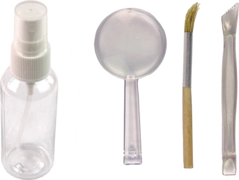 Il set include una bottiglia d'acqua, un pennello di precisione, una lente d'ingrandimento e uno strumento per scavare, tutto ciò di cui ha bisogno un perfetto piccolo archeologo.