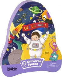L'immagine completata misura 50 cm x 34 cm ed è piena di colori vivaci che creano un'atmosfera allegra ed energica. I puzzle aiutano a sviluppare le abilità manuali e la concentrazione dei bambini mentre si divertono a esplorare lo spazio cosmico.
