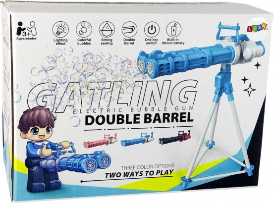 Questo set per bolle unisce divertimento e praticità: il montaggio semplice sostiene la motricità fine dei bambini, il treppiede regolabile garantisce l'altezza ideale e l'azionamento elettrico con batteria consente uno spettacolo di bolle ininterrotto. Le due “luffe”/testine intercambiabili creano flussi scenografici di bolle per effetti visivi d'impatto.