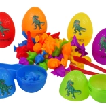 Il set offre sei uova colorate che nascondono allegre figurine di dinosauri con ventose. I bambini possono aprire le uova, scoprire i loro tesori e ordinare i piccoli dinosauri per colore o specie. Grazie alle ventose, le figurine possono essere fissate su diverse superfici, arricchendo e ampliando le possibilità di gioco e stimolando la creatività.