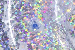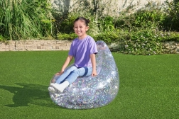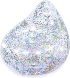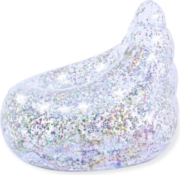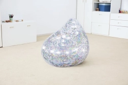 La poltrona gonfiabile vanta una plastica trasparente piena di glitter colorati che brillano ad ogni movimento, aggiungendo un tocco di brio ai tuoi spazi.