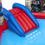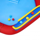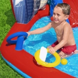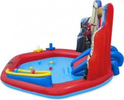 Questo campo giochi acquatico gonfiabile della Bestway include tutto ciò che è necessario per un grande divertimento al sole. Nei mesi estivi, i bambini adorano rinfrescarsi in piscina, e questo prodotto offre ancora di più - grazie allo scivolo e ad altri elementi divertenti sarà il vero centro del divertimento estivo. Robusto PVC dai colori vivaci assicura durata e longevità. Tra le principali caratteristiche, uno scivolo terminante con un morbido cuscino e docce d'acqua attivabili collegando il tubo da giardino.