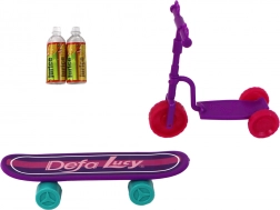 Il set include anche un monopattino e uno skateboard, che offrono possibilità di esplorare il mondo su ruote, allenare abilità sulle rampe, partecipare a corse o semplicemente godersi il movimento all'aria aperta. Due piccole bottiglie con bevande aggiungono un elemento realistico e aiutano a creare storie affascinanti.
