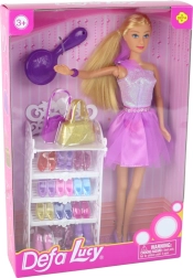 L'intero set include anche un armadietto bianco per scarpe e borse, una spazzola rosa per capelli per sistemare i lunghi capelli biondi della bambola, tutto confezionato in un pacco originale con dimensioni di 32 cm x 21 cm x 6 cm.