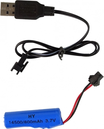 Inclusa una batteria 14500/800 mAh 3,7 V e un cavo di ricarica USB, così non serve acquistare un’alimentazione separata per il trattore.