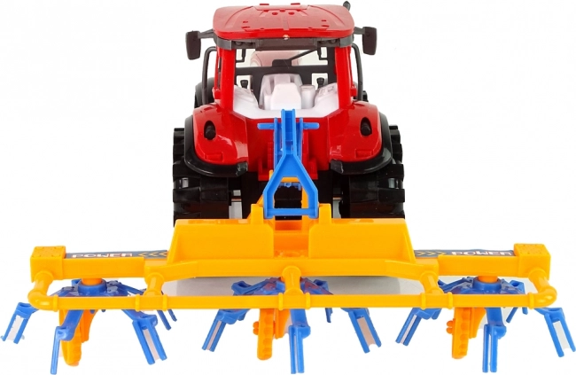 Questo trattore rosso finemente realizzato con ranghinatore posteriore trasforma ogni gioco dei bambini in un'avventura contadina. Grazie alla trazione a frizione il trattore si avvia facilmente in avanti e indietro, mentre le parti mobili del ranghinatore ruotano durante la marcia imitando il lavoro reale nei campi.