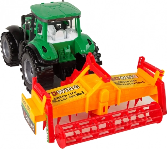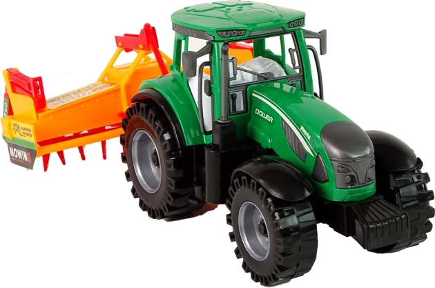 Questo trattore verde, dettagliato e curato, con coltivatore arancione-rosso agganciabile offre ai bambini un’autentica esperienza di fattoria. Pneumatici realistici, cabina aperta e accessori funzionali favoriscono il gioco creativo e lo sviluppo della fantasia.