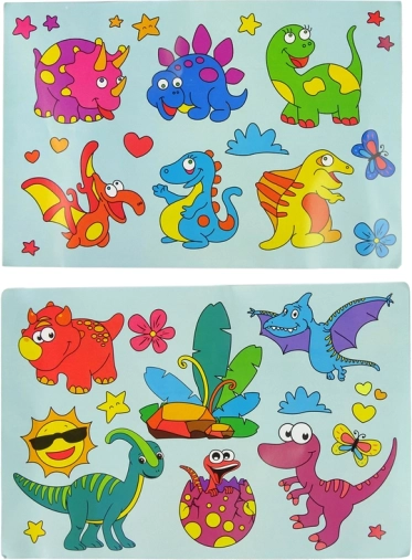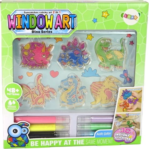 La pittura con colori gel che induriscono è un'attività perfetta per il tempo libero che ti permette di esprimerti. Risveglia l’artista che è in te. È un divertimento che dura a lungo e sviluppa al meglio creatività e immaginazione. Creerai splendide vetrate a forma di dinosauri per decorare la tua stanza.