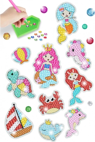 Questo set permette a bambini e adulti di esprimere la loro creatività creando adesivi scintillanti unici.