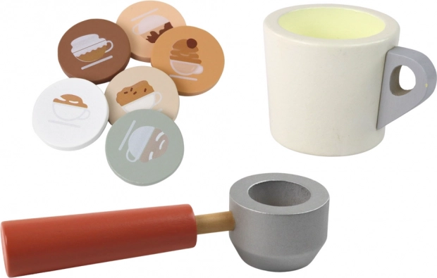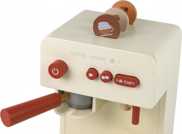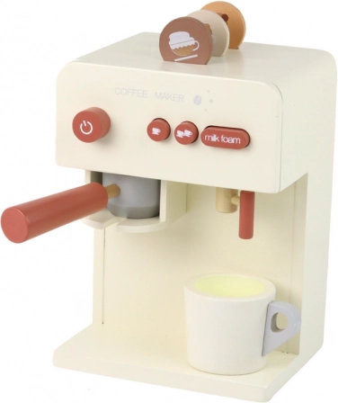 La combinazione di legno e plastica è resistente e piacevole al tatto. Giocare con la macchina del caffè sviluppa la motricità fine, la coordinazione mano–occhio e le abilità sociali nel gioco condiviso. Grazie alle dimensioni compatte, la macchina si trasporta e si ripone con facilità.
