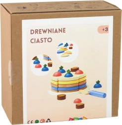 Questa torta di legno di qualità è divisa in segmenti uniti da chiusura a strappo. I bambini possono così facilmente “tagliare”, comporre e servire le porzioni, esercitare la presa e sviluppare la fantasia. Le decorazioni e i pezzi colorati invogliano all’esplorazione, all’apprendimento di colori e forme.