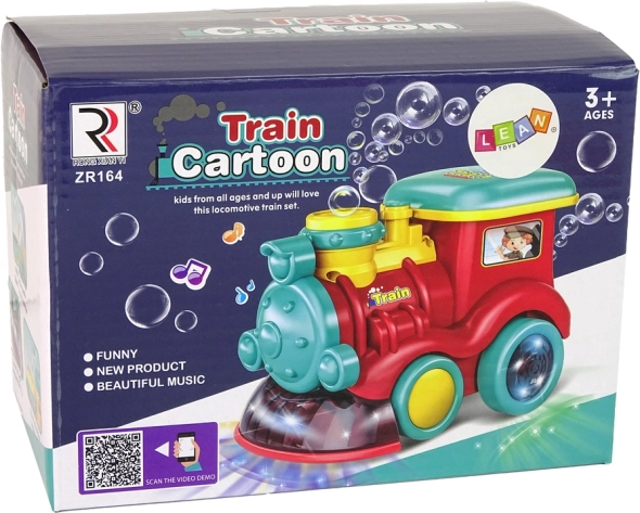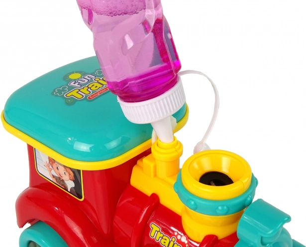 Inclusa una bottiglietta di soluzione per bolle, grazie alla quale la locomotiva crea decine di scintillanti bollicine.