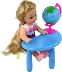 Inoltre, comprende un tavolo e una sedia, su cui le bambole possono sedersi comodamente, simulando perfettamente un ambiente scolastico.