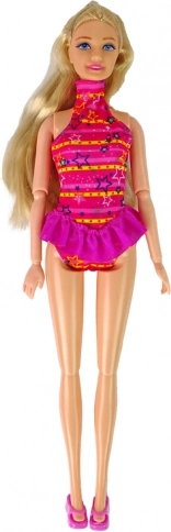 La marionetta è dotata di lunghi capelli biondi e un magnifico outfit da bagno rosa, che supporta ogni gioco.
