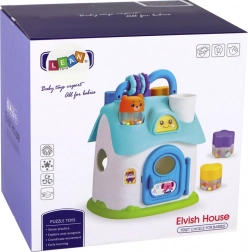 La casa dispone di quattro diversi fori sul tetto per la classificazione per forma e colore e porte colorate apribili. Sul tetto c'0e una finestra con un volto sorridente che si illumina ed emette suoni, incoraggiando l'interazione e l'interesse del bambino.