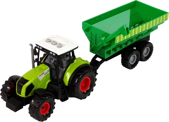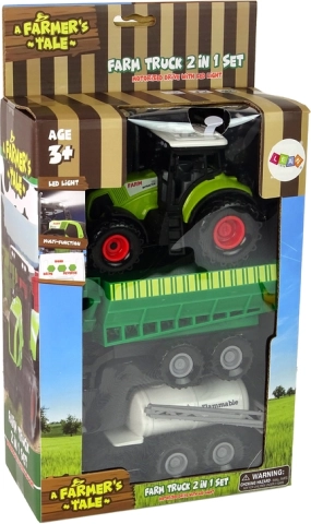 Il giocattolo trattore con rimorchio e macchine agricole offre una mini-fattoria completa! Questo modello realistico permette ai bambini di scoprire come funziona il lavoro in una fattoria agricola. Il trattore è dotato di tre pulsanti funzionali sul tetto della cabina, che controllano i suoni del motore, della retromarcia e del clacson e allo stesso tempo attivano le luci LED.