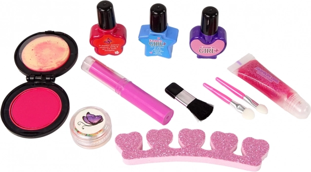 Include 3 lucidalabbra, un rossetto, un gloss in tubetto e 3 smalti per unghie, completati da separatore e adesivi – tutto per una perfetta trasformazione dei più piccoli.