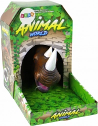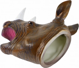 Questo burattino a mano a forma di rinoceronte appare straordinariamente realistico: ha grandi occhi neri, corna modellate con precisione e una superficie strutturata che ricorda la pelle. La gomma morbida è piacevole da impugnare e consente un facile controllo della mandibola e delle espressioni, trasformando ogni racconto in un teatro vivente.