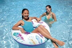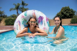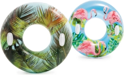 Il materiale resistente da 0,25 mm resiste bene all’uso comune sia in piscina sia al mare. Grazie ai motivi tropicali con palme o fenicotteri, la ciambella attira l’attenzione e dona alla tua attrezzatura estiva uno stile fresco.