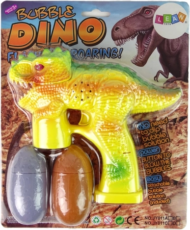 Rendi più allegra la giornata dei bambini con un adorabile soffiabolle a forma di dinosauro! Questo giocattolo in plastica resistente crea tante bollicine scintillanti ed è facile da usare anche con le manine più piccole. Nella confezione trovi due ricariche a forma di uovo per un divertimento con le bolle lungo e senza pensieri. Scelta ideale per bambini dai 3 anni – struttura sicura, certificazione CE e norma EN71.