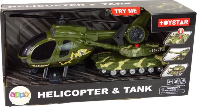 Il set include carro armato ed elicottero con la stessa mimetica – pronti all’azione subito dopo l’apertura.