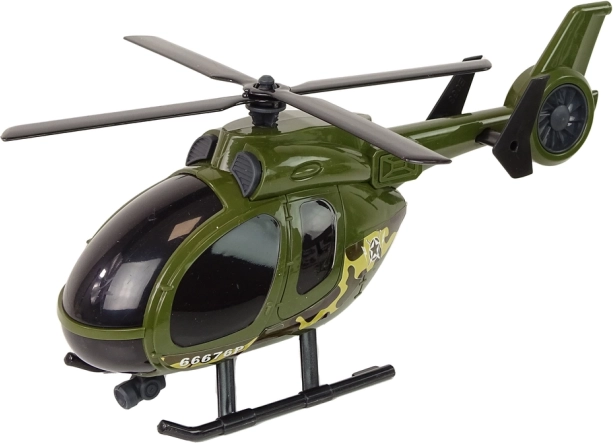 Elicottero dal design realistico con mimetica e rotore che può essere fatto girare manualmente – ideale per scenari aerei dinamici.