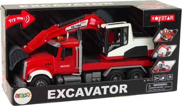 Questo set dettagliato include un trattore con rimorchio e un escavatore completo. La cabina dell’escavatore ruota di 360° per raggiungere facilmente ogni punto del “cantiere”, la benna si può regolare in altezza e angolazione per scavare, caricare e spostare materiali. I bambini si divertiranno con un gioco realistico grazie agli effetti di luce e suono controllati da tre pulsanti sul tetto.